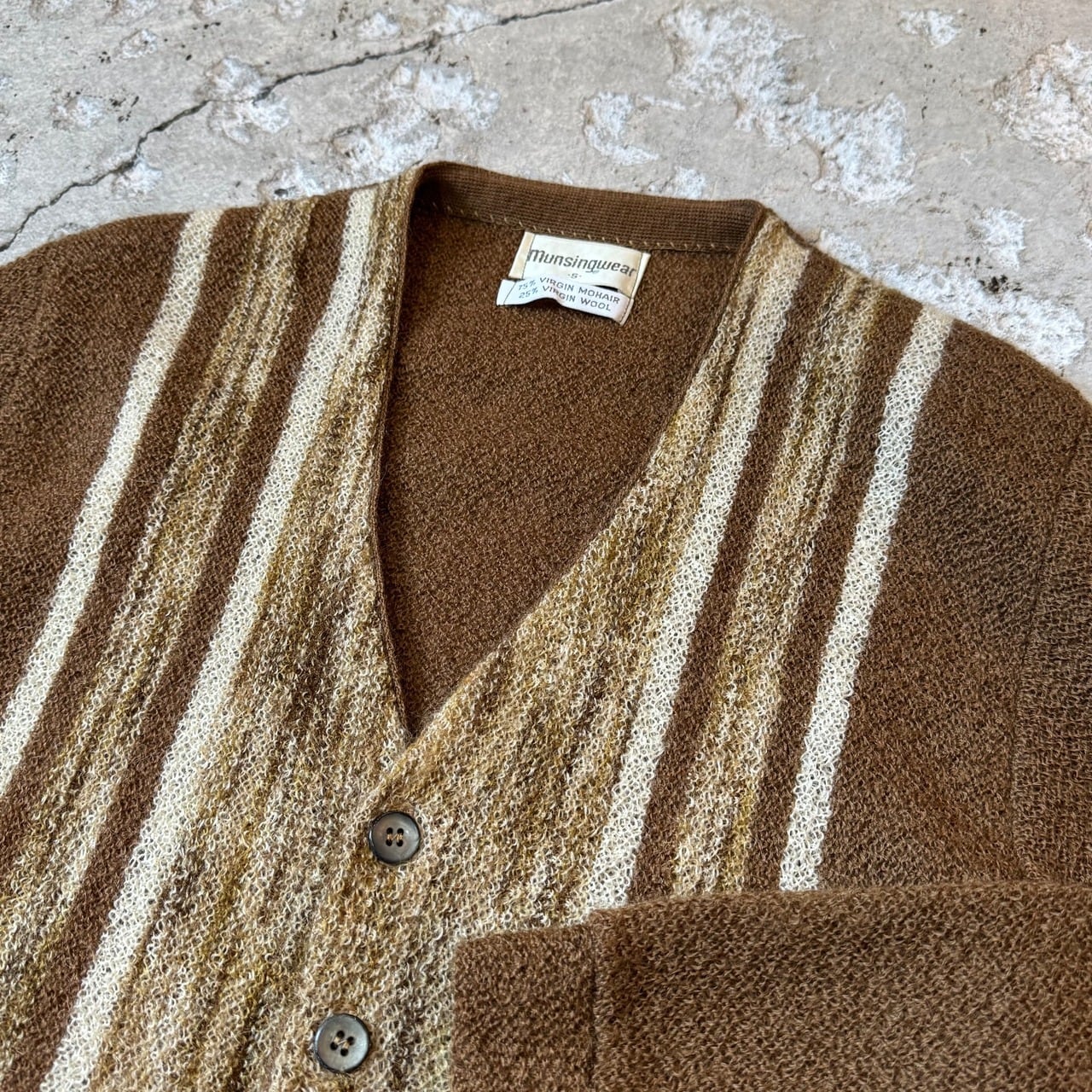 商品名 : マンシングウェア 70年代 モヘア ウール ストライプ 柄 カーディガン