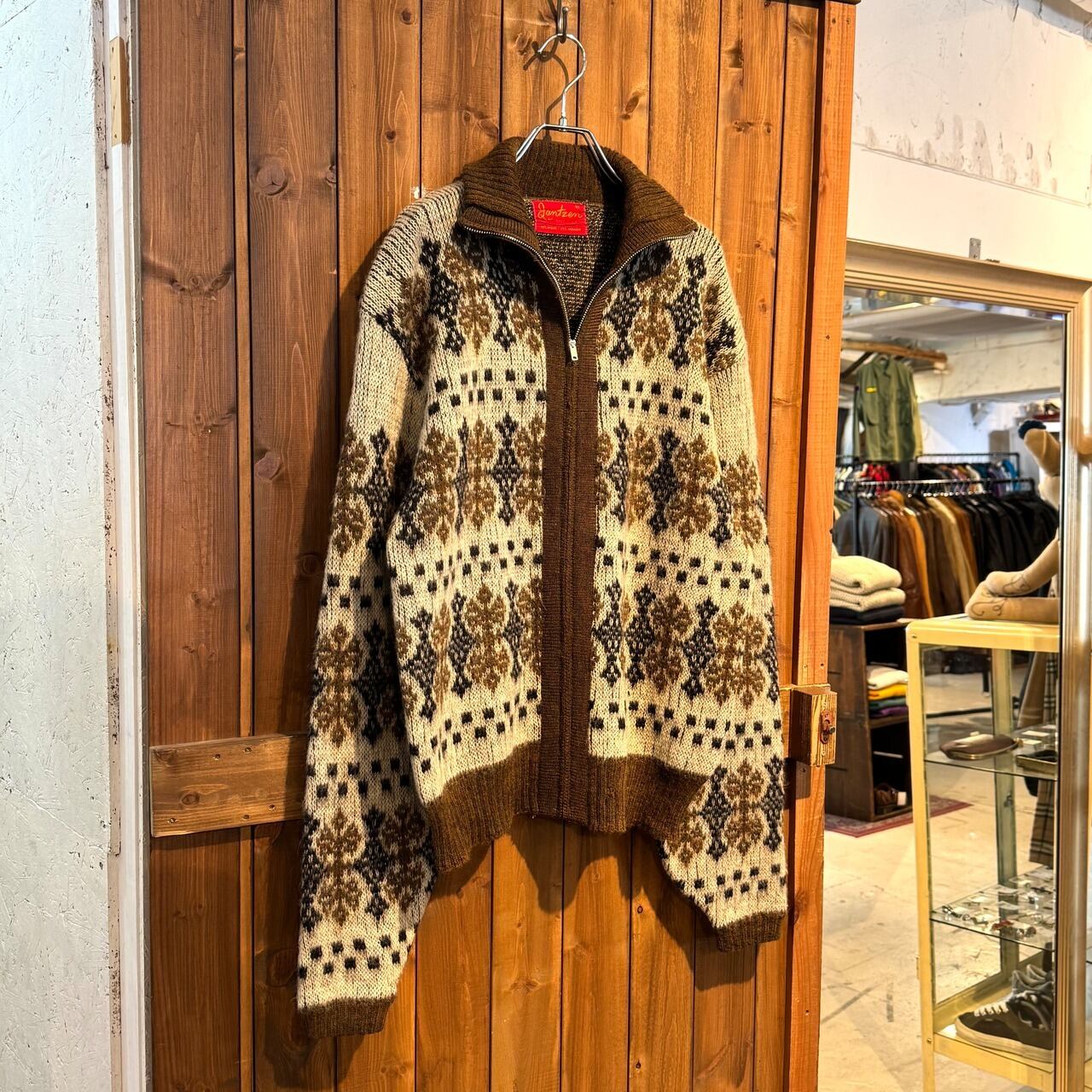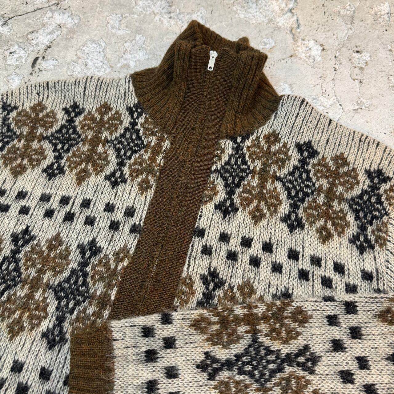 商品名 : JANTZEN / ジャンセン 60s アメリカ製 総柄 ジップ モヘアカーディガン