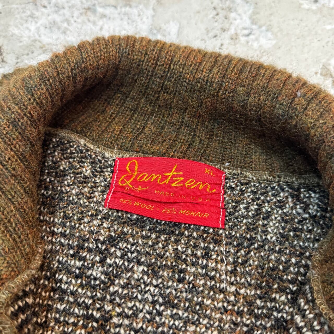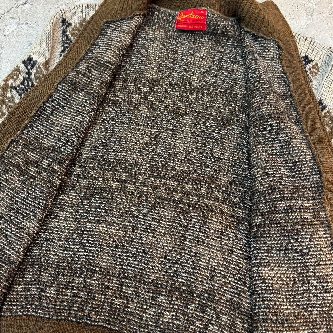 JANTZEN / ジャンセン 60s MADE IN U.S.A. Allover Pattern Zip Mohair Cardigan サイズXL