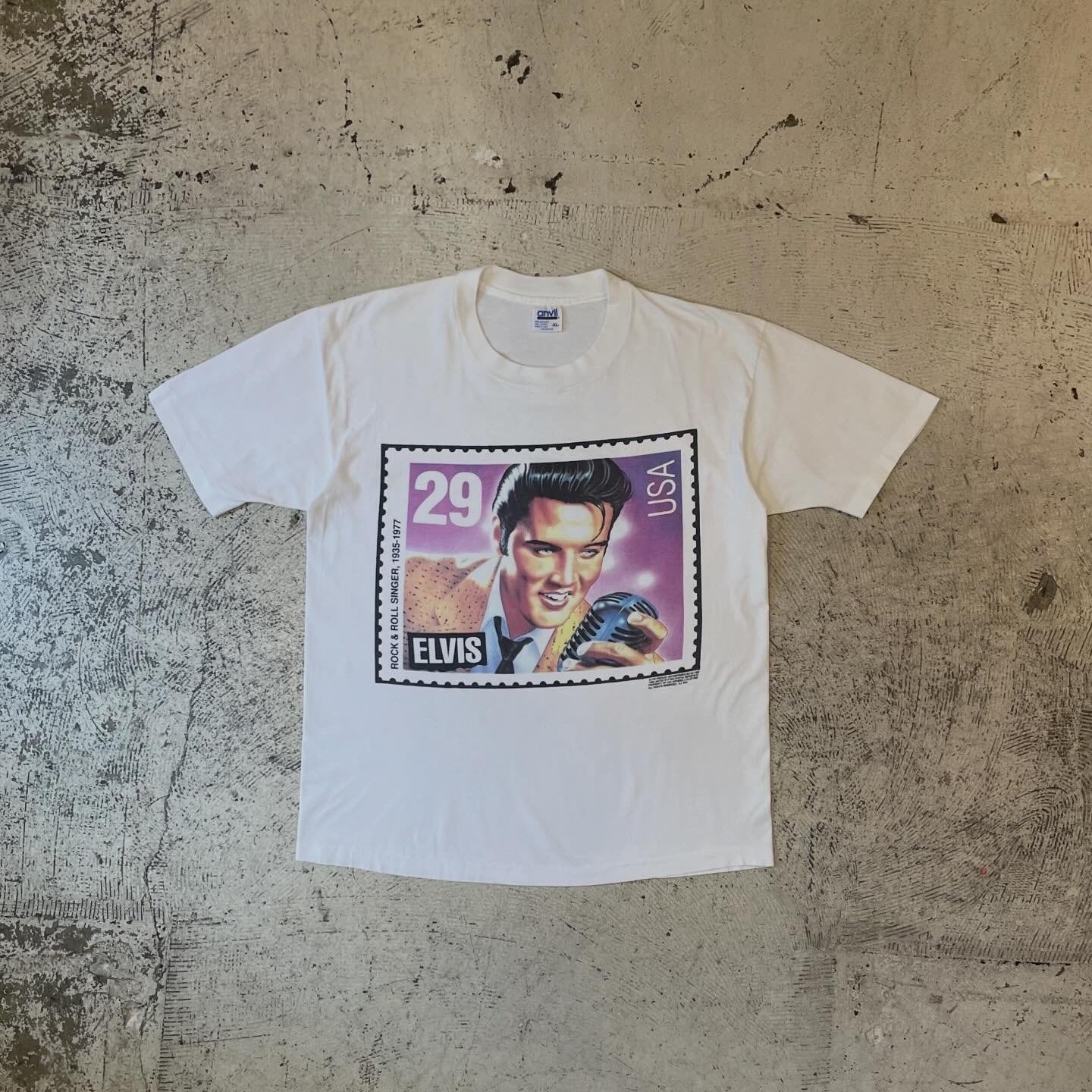 商品名 : anvil 90年代 アメリカ製 エルビスプレスリー 切手 プリント バンT Tシャツ